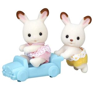 ●シルバニアファミリーのショコラウサギのふたごちゃん、うば車、赤ちゃん用おもちゃが付いている、すぐに遊べるかわいいセットです。